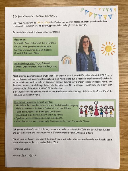 wir begrüßen die Erzieherinnen Anne Schuricht und Susann Thümer recht herzlich in userem Team. Informationen zu den Kolleginnen, welche das Team des Schulhortes verstärken, finden Sie in den Bild-Steckbriefen des Beitrages.
