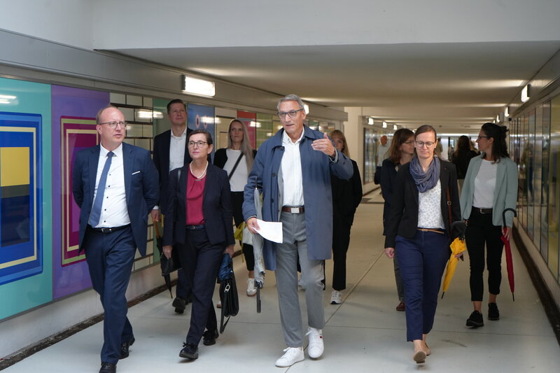 Am 5. August 2025 begrüßte Oberbürgermeister Holuscha eine Delegation des Sächsischen Staatsministeriums für Infrastruktur und Landesentwicklung (SMIL), angeführt von der Leiterin der Abteilung für Stadtentwicklung, Bau- und Wohnungswesen, Frau Annette Rothenberger-Temme und Mitarbeitern der Sächsischen Aufbaubank (SAB) in Flöha. Anlass des Besuches war die Besichtigung verschiedener Maßnahmen, welche im Rahmen des EFRE-Programms „Nachhaltige integrierte Stadtentwicklung“ gefördert werden.