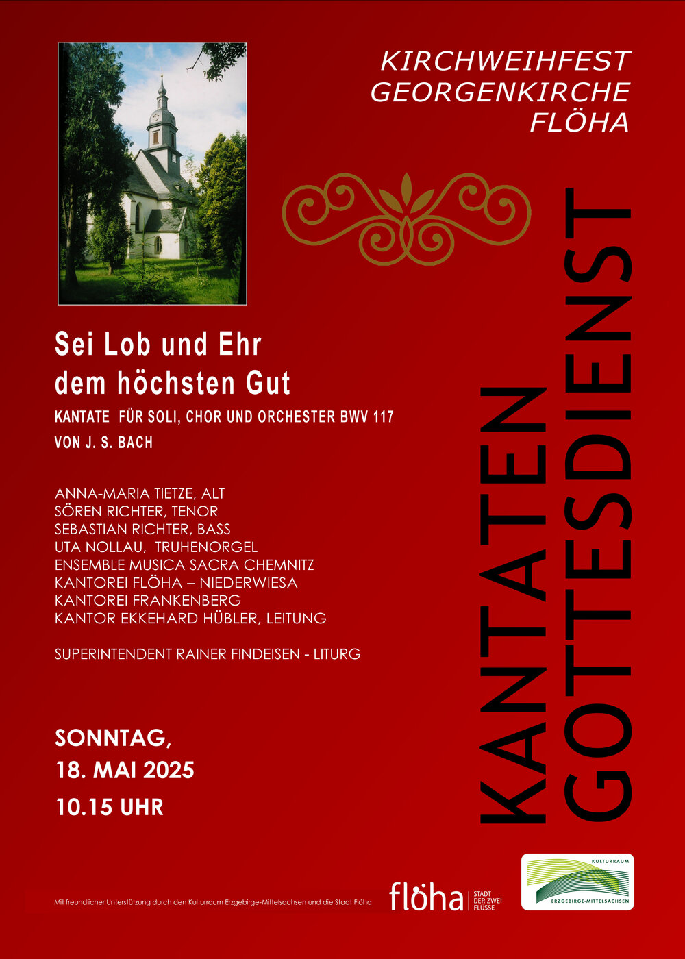 Am Sonntag, dem 18. Mai 2025, 10.15 Uhr feiert die Ev.-Luth. Kirchgemeinde mit einem festlichen Kantatengottesdienst das Kirchweihfest ihrer Georgenkirche.