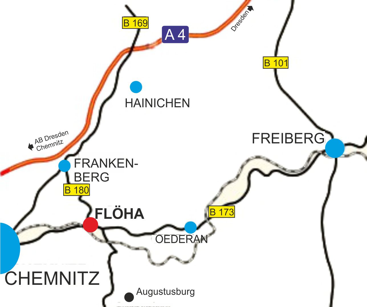 Flöha ist mit ca. 10458 Einwohnern (Stand 2014) Große Kreisstadt im Landkreis Mittelsachsen . Sie grenzt unmittelbar an die Industriestadt Chemnitz. Der Fluss Flöha, der der Stadt ihren Namen gab, durchquert gemeinsam mit dem Fluss Zschopau den Ort. Beide Flüsse vereinigen sich am Stadtrand.