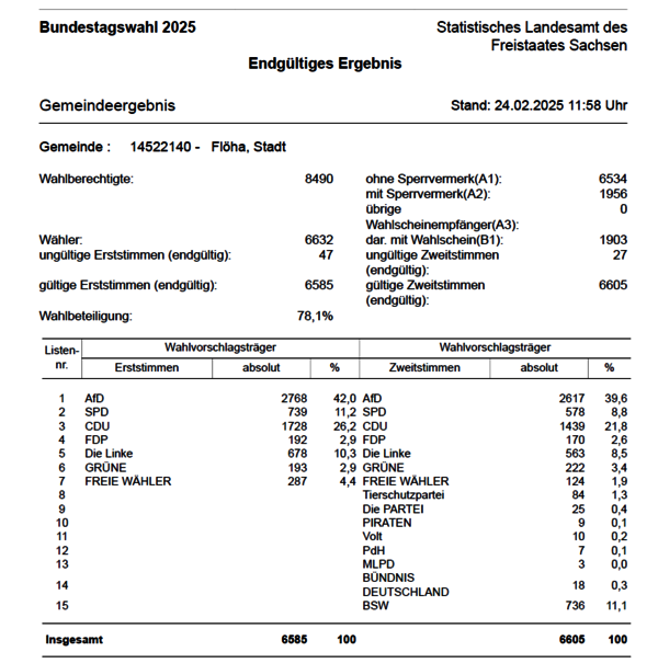 Die Wahlen zum Flöhaer Stadtrat und zum Ortschaftsrat im Ortsteil Falkenau fanden am 26. Mai 2019 statt. Eine detailierte Auflistung der Ergebnisse nach Wahlbezirken finden Sie hier.